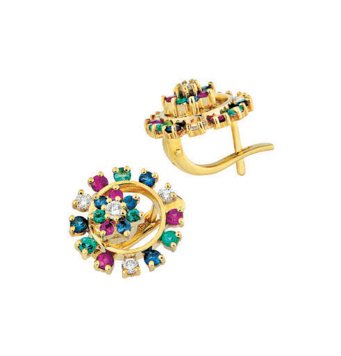 Золотые серьги с бриллиантами, изумрудами, рубинами и сапфирами
